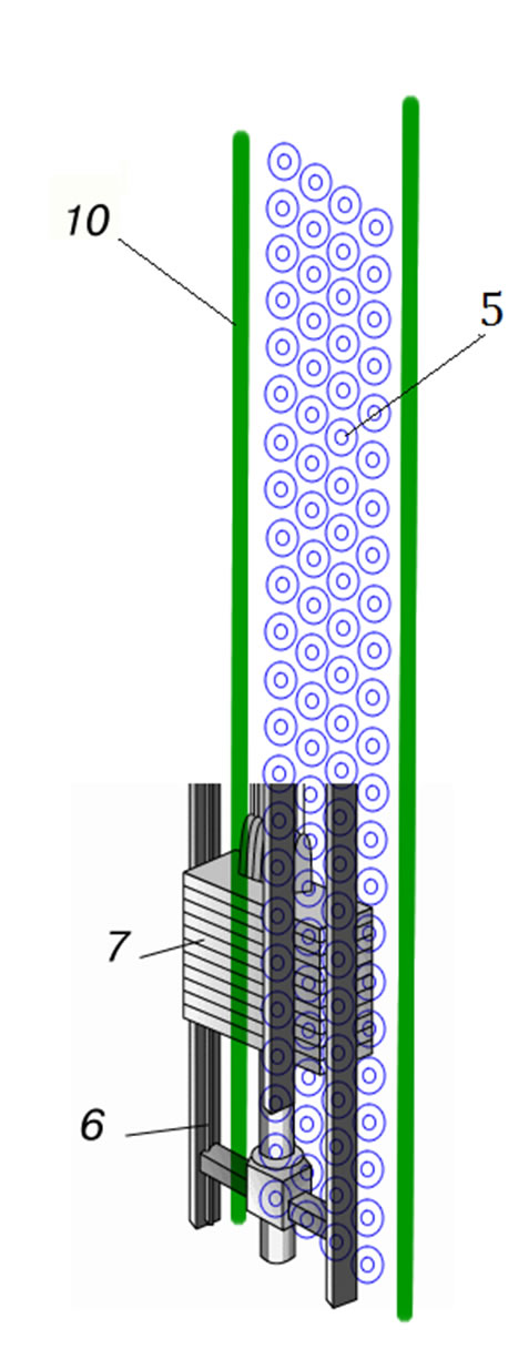 O princípio da USINA DE ENERGIA VERTICAL é que, durante o movimento da cabina cheia no sentido descendente ou durante o movimento da cabina vazia no sentido ascendente, a redução da energia potencial seja convertida em energia elétrica. A energia elétrica convertida irá realimentar a rede do edifício.